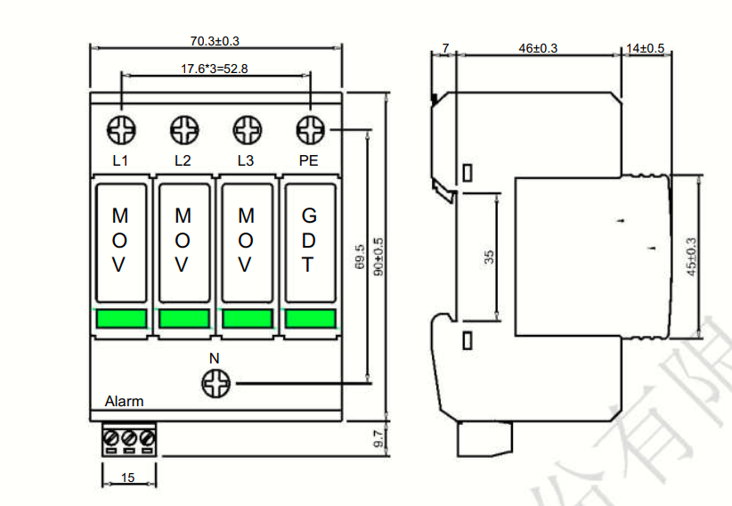 level classification test) lightning protection. This type adopts to 35 mm DIN TTW Guide installation.The