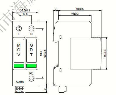 adopts to 35 mm DIN TTW Guide installation. The surge protection module can be changed independently, which
